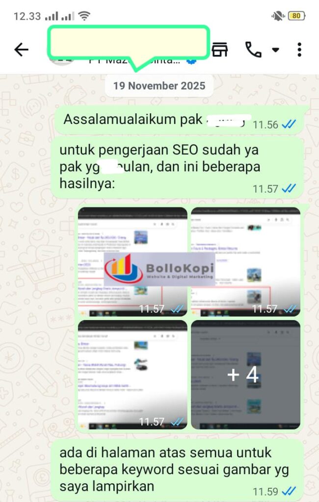 Berikut beberapa testimoni pekerjaan & progress  di jasa pembuatan website bollokopi digital agency